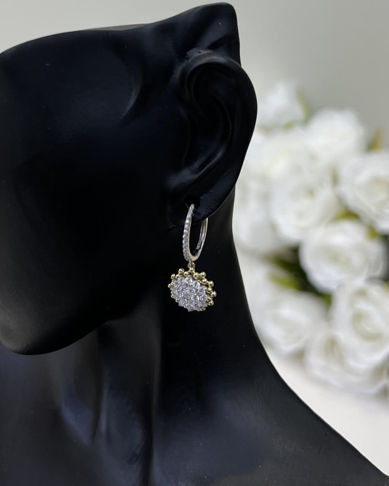 حلق ذهب عيار 18 تصميم الماس الوزن : 5.1g